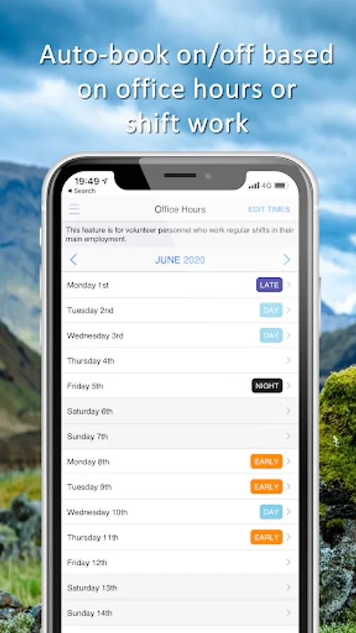 The app allows team members to book themselves as unavailable, for example if they need to leave the area, and book back on when they return at the touch of a button.