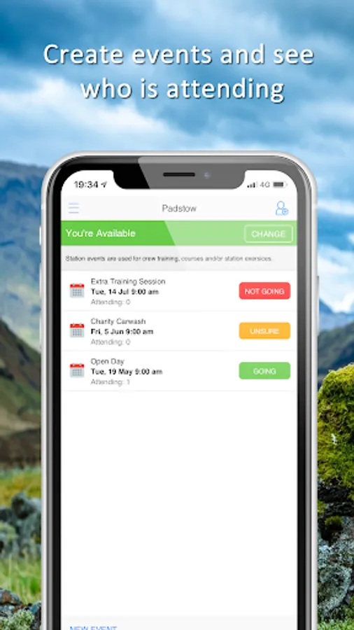The availability is instantly updated across all other crew members phones so it's easy to see at any time who is available should the team have a call-out.