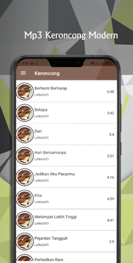 With the Offline Songs - Lyrics application, you can hear the Keroncong Offline Mp3 song without the internet. By listening to an album of songs without worrying about running out of the internet.