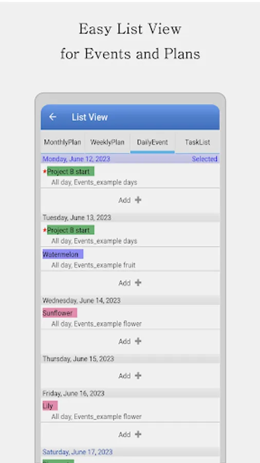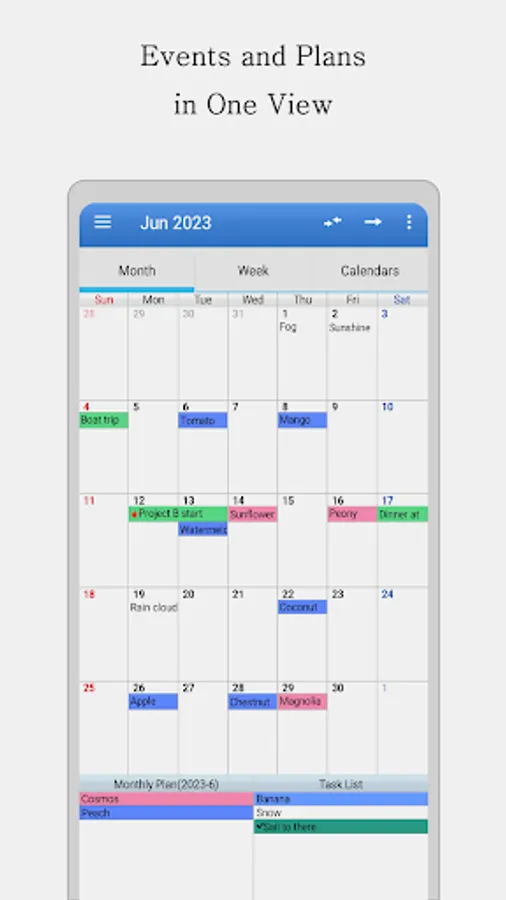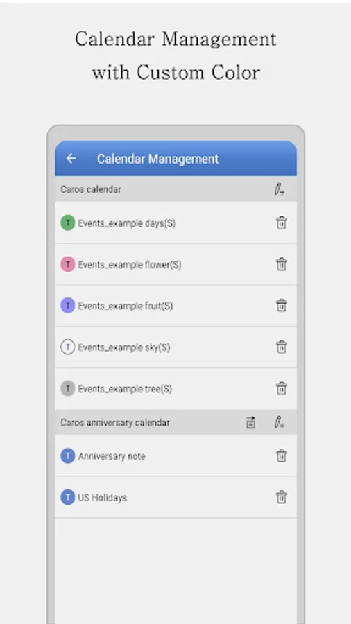 You can input and manage your personal schedules and plans on different calendar. And each calendar can have different colors according to you select a custom color.