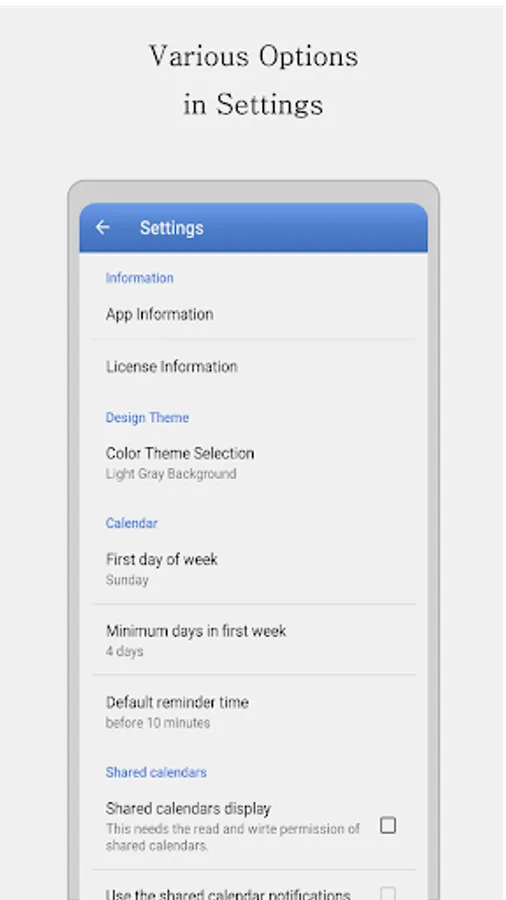 This can display and modify contents of the phone's calendar and calendar of the registered account.