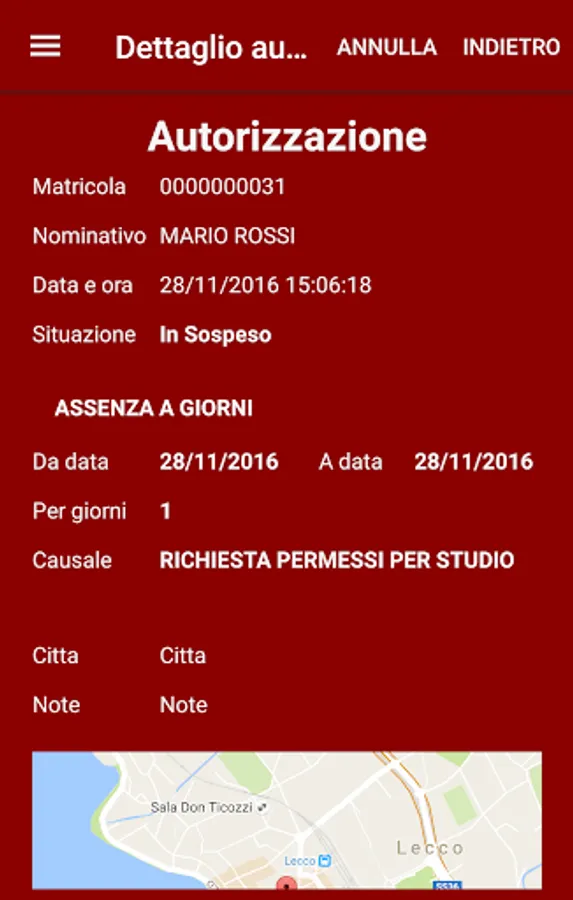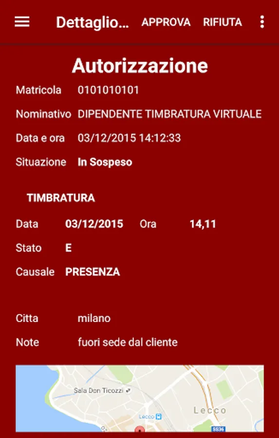 - Insertion of geolocalised authorization requests: absence, clocking in, overtime
