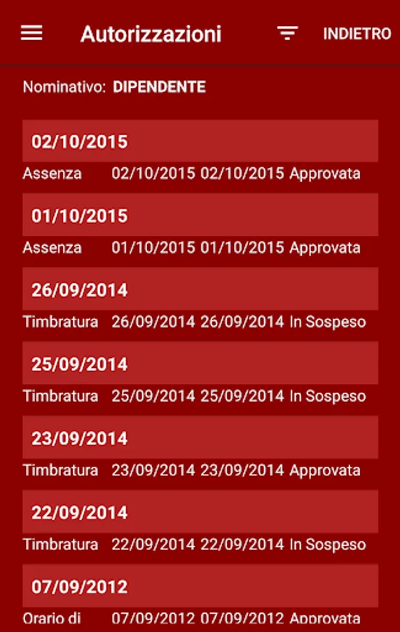 - Consultation of clockings and authorizations for employee