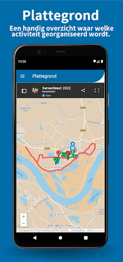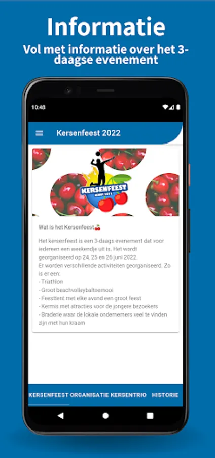 Stay informed of the latest news via the Kersenfeest app. The program's map and latest messages are always at hand.