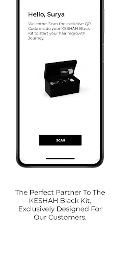 "Welcome to the KESHAH app - a bespoke, exclusive experience for our customers. We've meticulously crafted this app to guide you on your hair regrowth journey, offering a unique, data-driven approach.