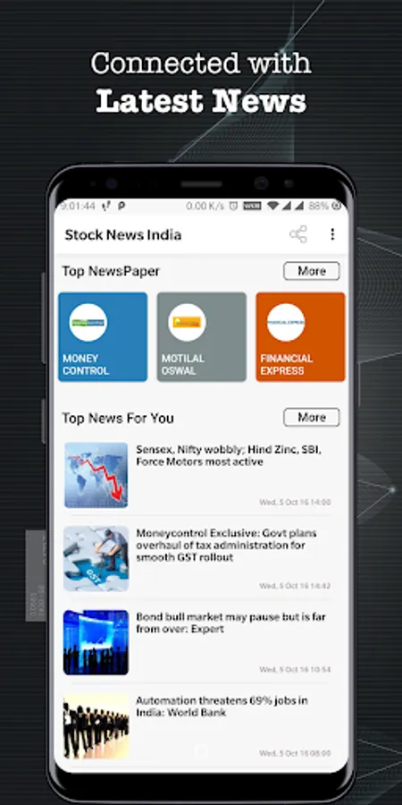 Top 16 websites of Indian stock market news at one app called "Stock News India"."Stock News India" also provides the latest news feed of your interest which helps you to get updated about the indian stock market. "Stock News India" contains a smooth and user-friendly design for reading.