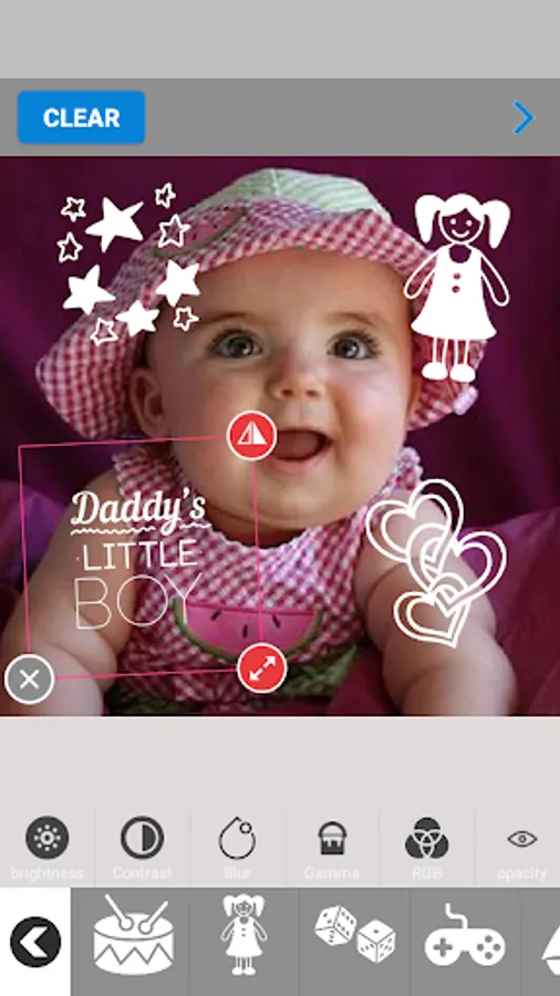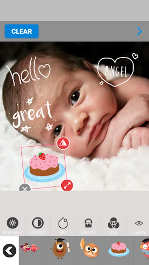 5. Adjust it on your photo and tap on sticker image if you want to change color, brightness, contrast etc.