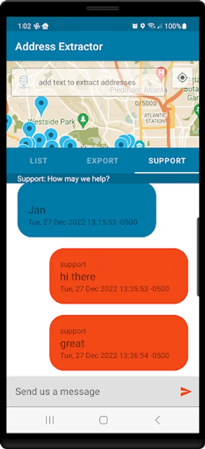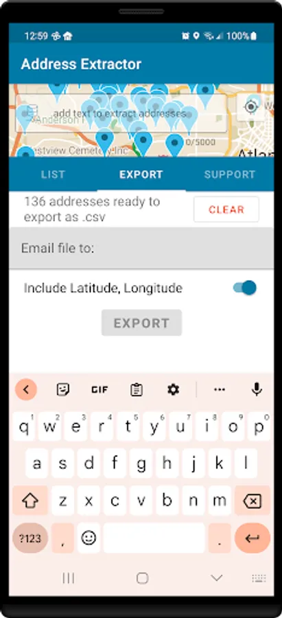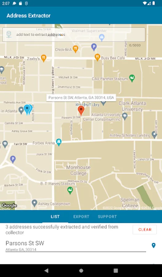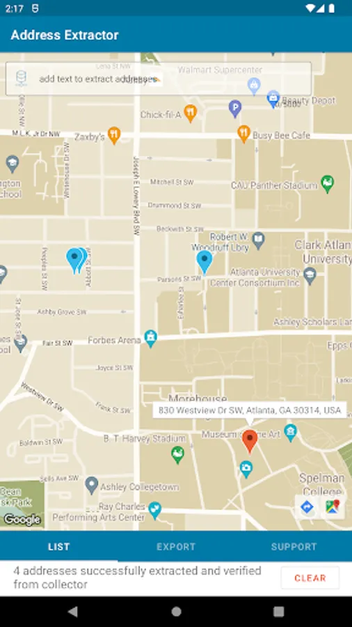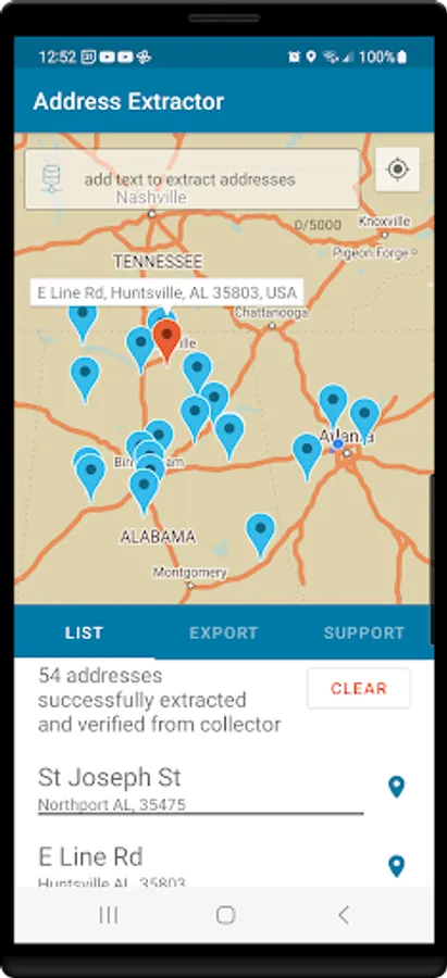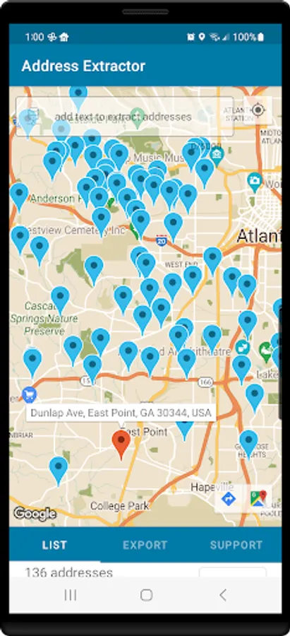 See all addresses in a list or plotted on an interactive visual map.