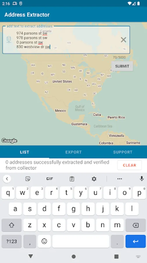 Populate address list with geocoding (lat, long) from unformatted bulk text with ease.