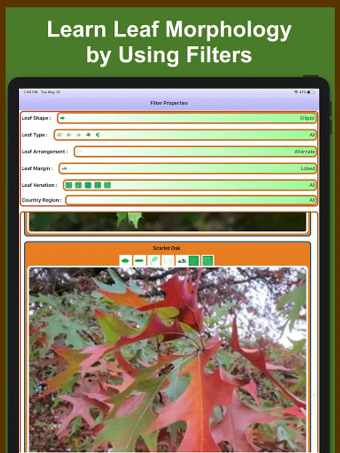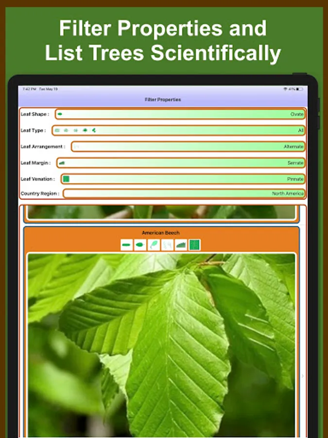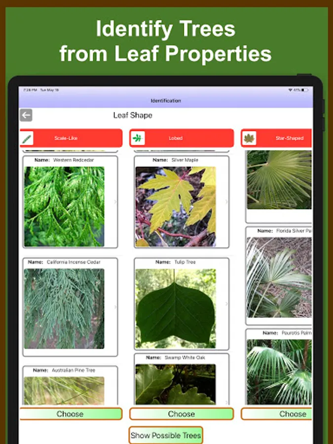 All native trees from America, Europe, Asia, Africa and Australia have been added in our free app.
