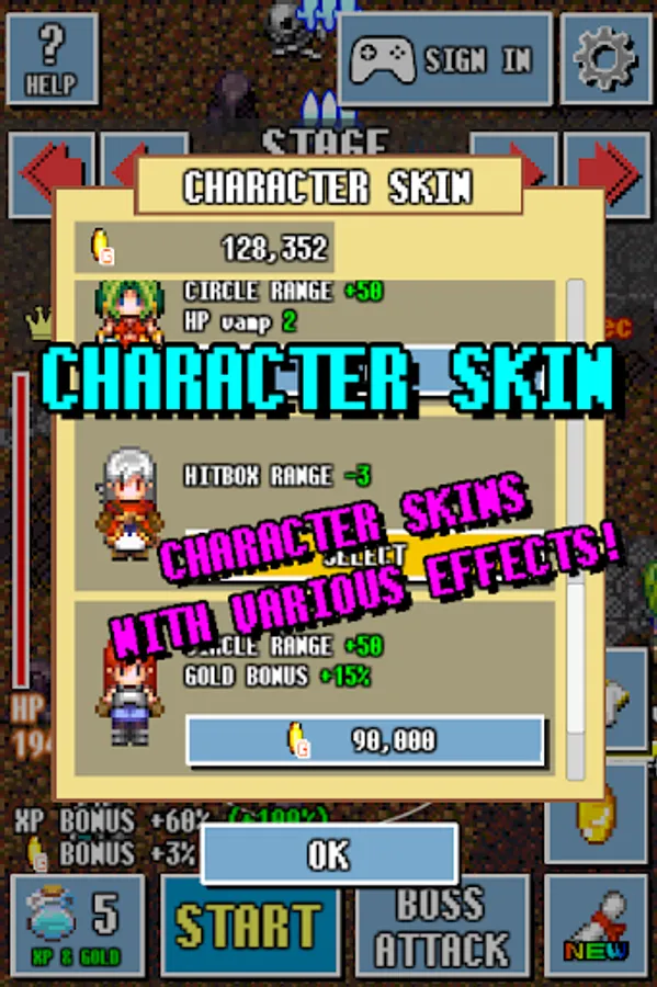 - XP potions what increase xp bonus when you clear stage, will be given by watching AdMovie. (Max 5)