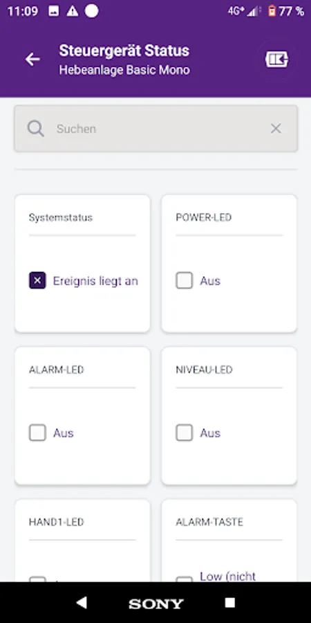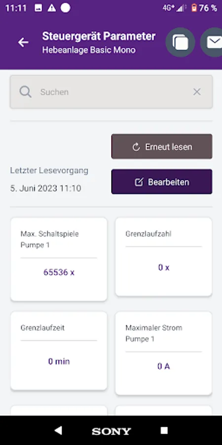 Depending on the product type (lifting stations, grease separators) and access authority, control unit parameters and settings can be adjusted and changed.