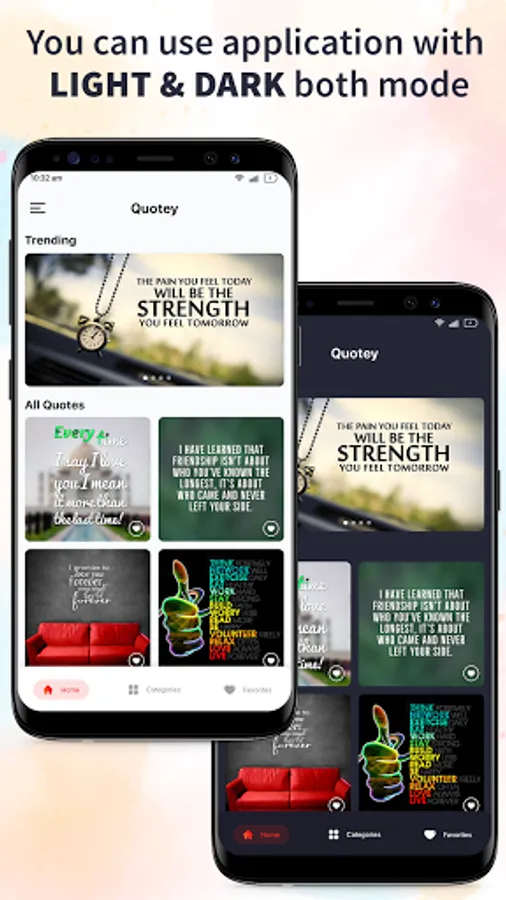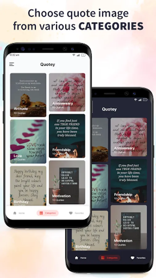 Quotey is an quotes app that provides huge collection of Image quotes and text quotes for different categories. There are more than 10,000+ quotes and more than 100 categories.