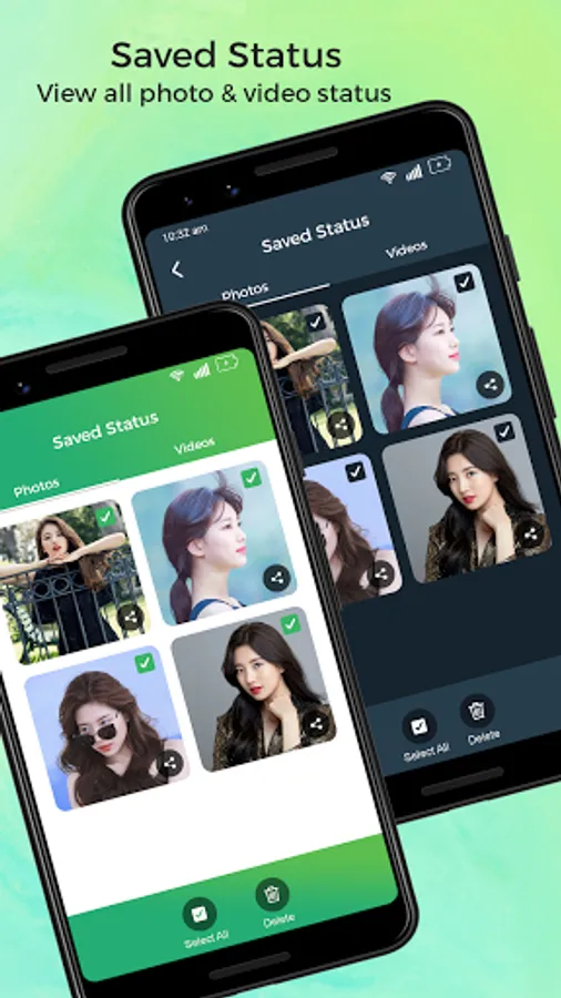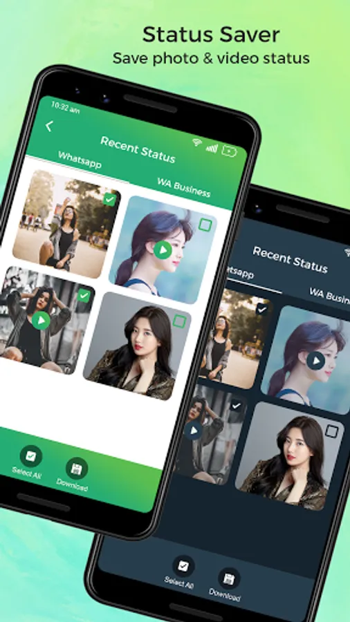 ★ Select All or Multiple select option for download & delete status