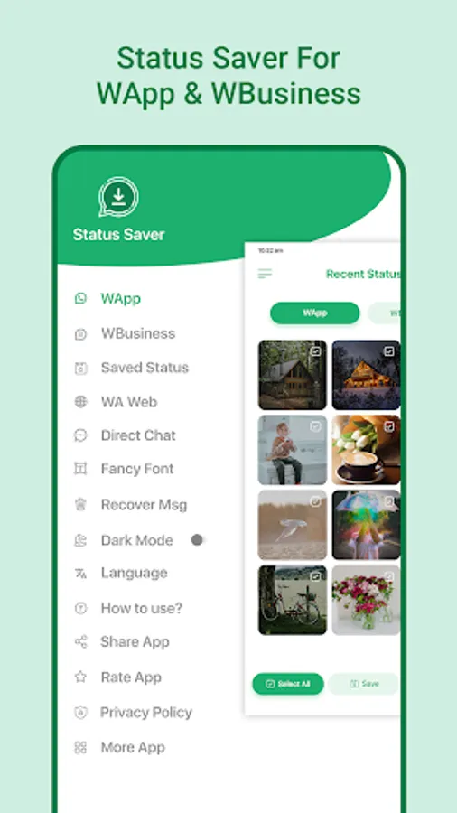 Status Saver Pro is for easy to download any WA & WB images, videos status, WA web and direct chat without saving number.