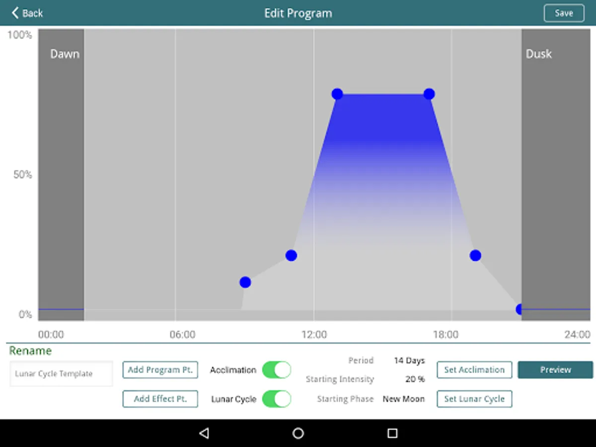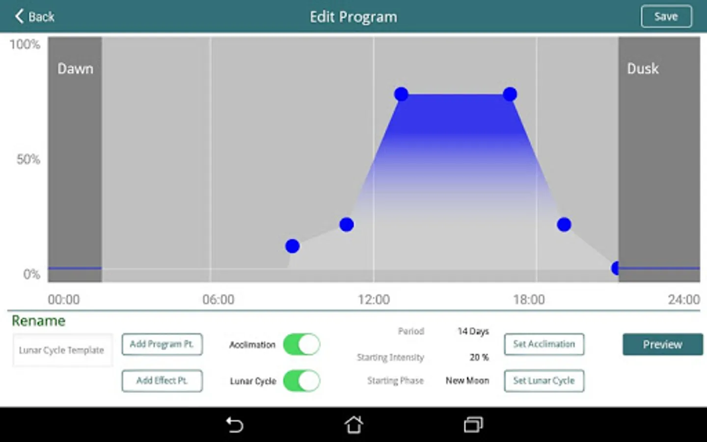Control your aquarium lighting with the intuitive Kessil WiFi Controller. Customize color and intensity on demand. Program your own unique light schedule to simulate the natural course of the sun and the moon. Create your own personal ocean.
