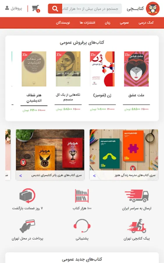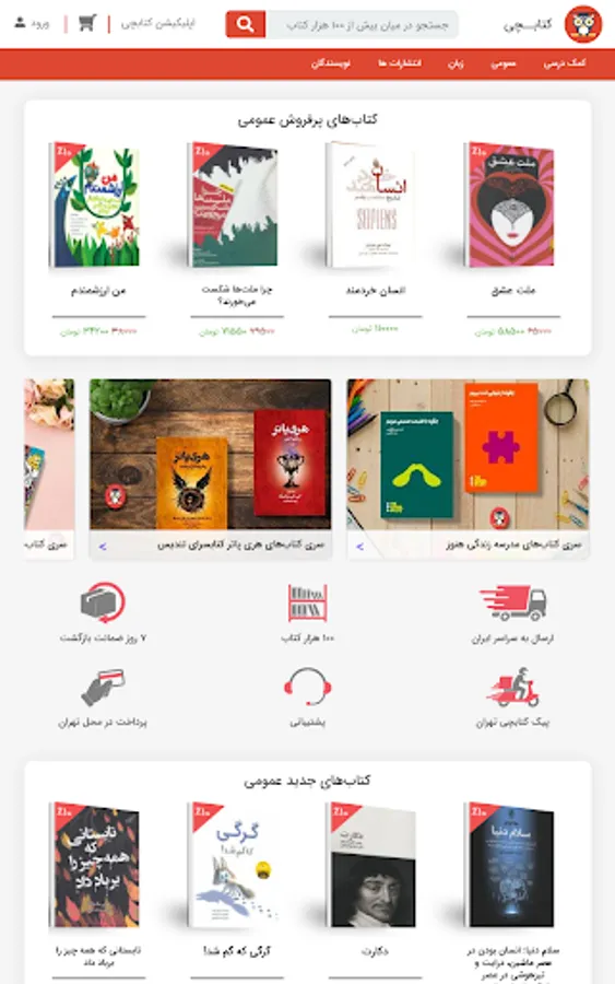 - Easy search among more than 100,000 book titles from publications such as Kheyli Sabz, Mobtakaran, Mehrumah, Ghalamchi and Cheshmeh Publishing