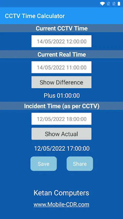 This tool calculates the incident time based on the difference between CCTV time and real time.