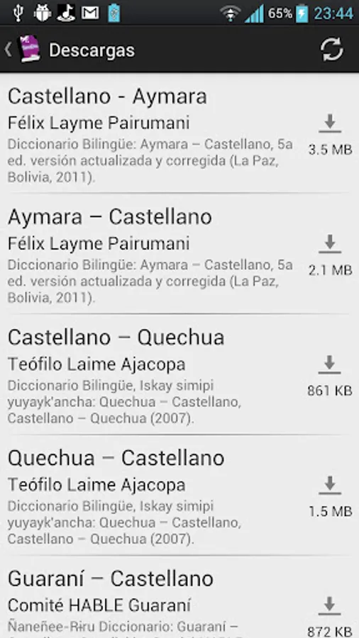 It includes several dictionaries of Native American languages, including Aymara, Quechua, Guaraní and Mapudungun: