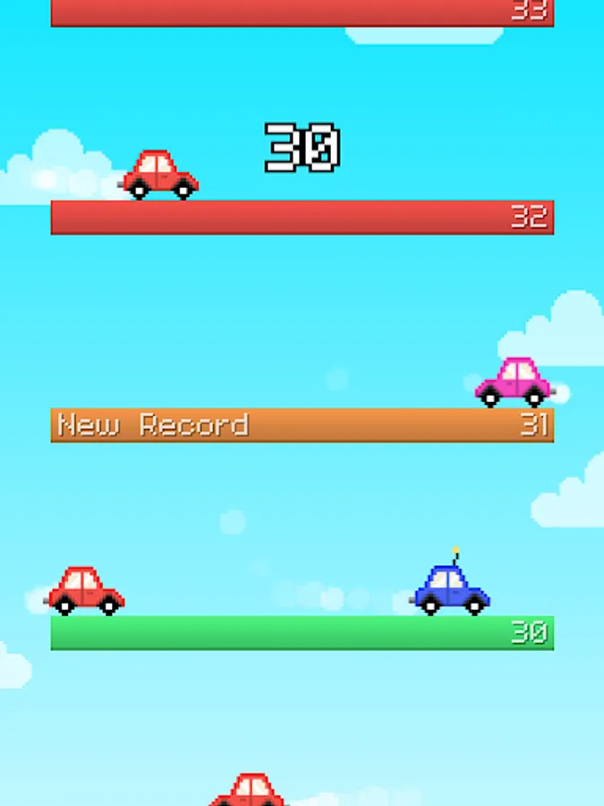 Jump from platform to platform with your Jump Car! Time your jumps carefully and don't crash into the other cars.