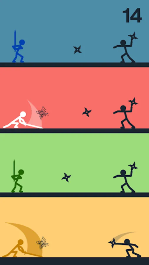 Make all the dudes use their swords to destroy the shurikens flying across the screen.