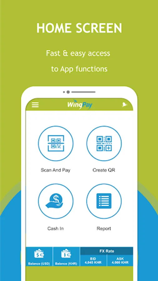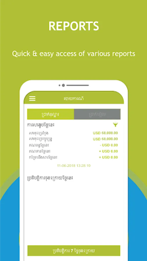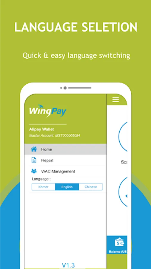 - Language Selection: Support 3 different languages such as Khmer, English & Chinese.