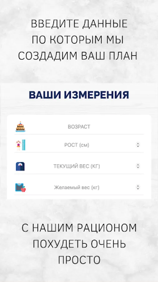 - A unique approach that takes into account your gender, age, height, current weight and the ultimate goal of your weight;