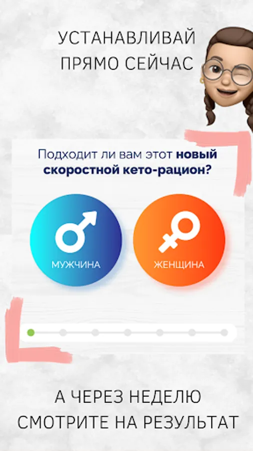 The application "Keto Diet (diet) - lose weight in 30 days" is dedicated to creating a personal menu for a keto diet! After spending one minute and passing the test, you will receive a diet for 28 days!