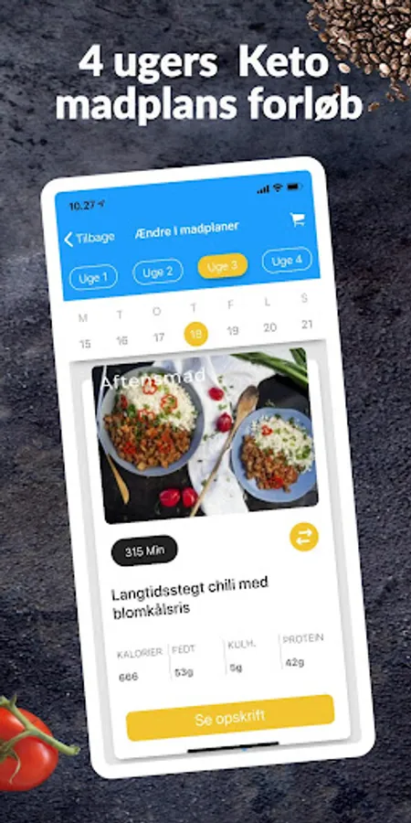 You can use our Keto meal plans, and easily change them if, for example. is a dish you do not break up. With one click you can replace the dish with another, after which the nutritional content and shopping list update automatically!