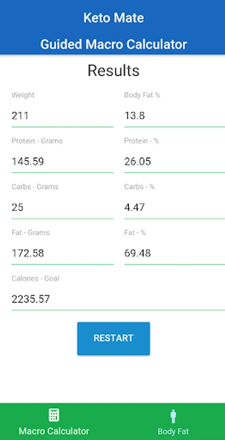 *This calculator is provided for informational purposes only. It's not made to recommend the Ketogenic diet, or diagnose or treat any condition. Always talk to your doctor before starting a new diet. Keto Mate is not responsible for any results, positive or negative, that come about from following a Ketogenic diet.