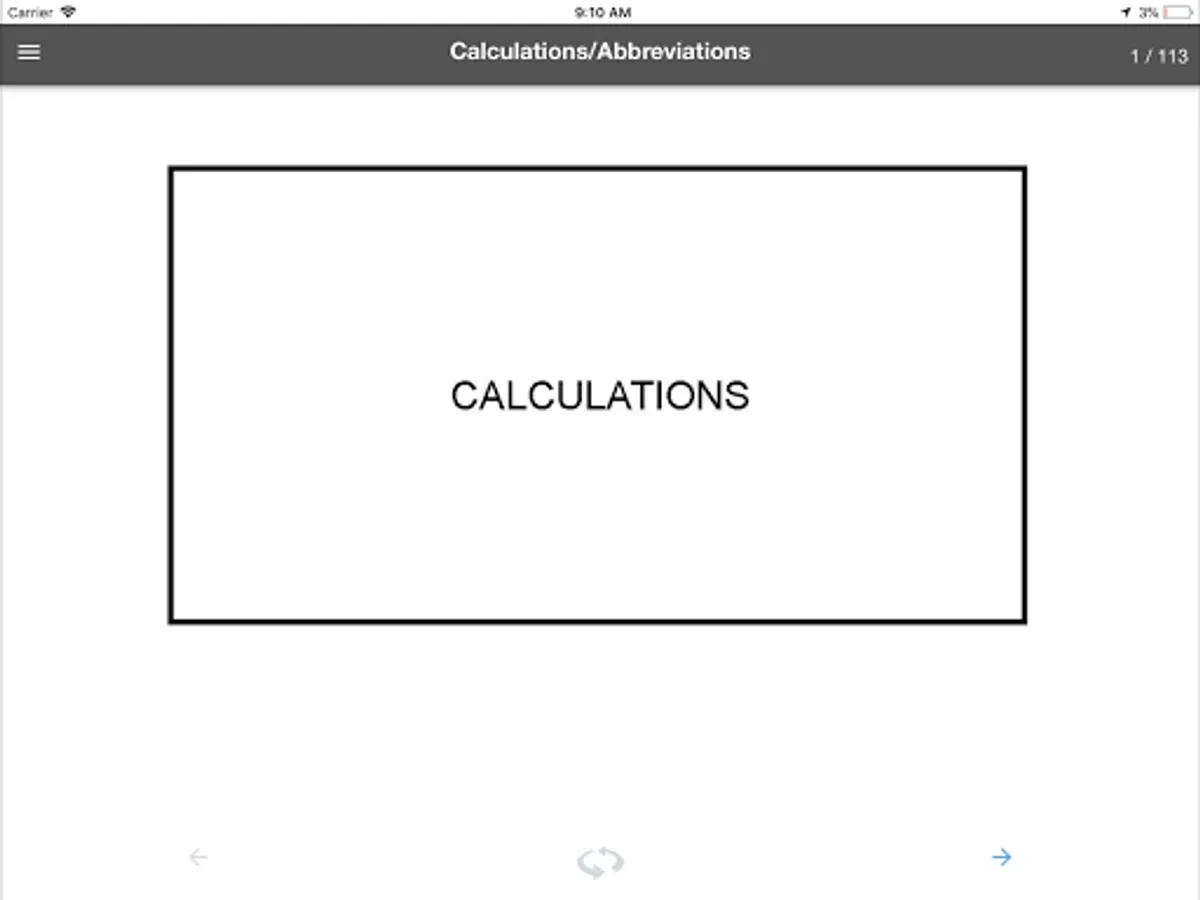 Each card has a stated formula or common abbreviation on the front side of the card with the corresponding correct response on the back side of the card.