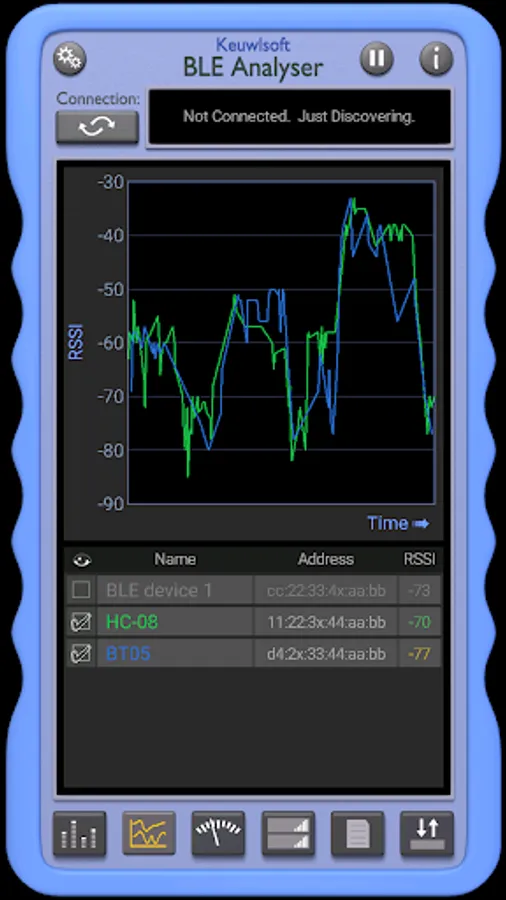 Note that this app is for Bluetooth Low Energy (Bluetooth 4.0), and will not work with Bluetooth Classic (Bluetooth 2.0).