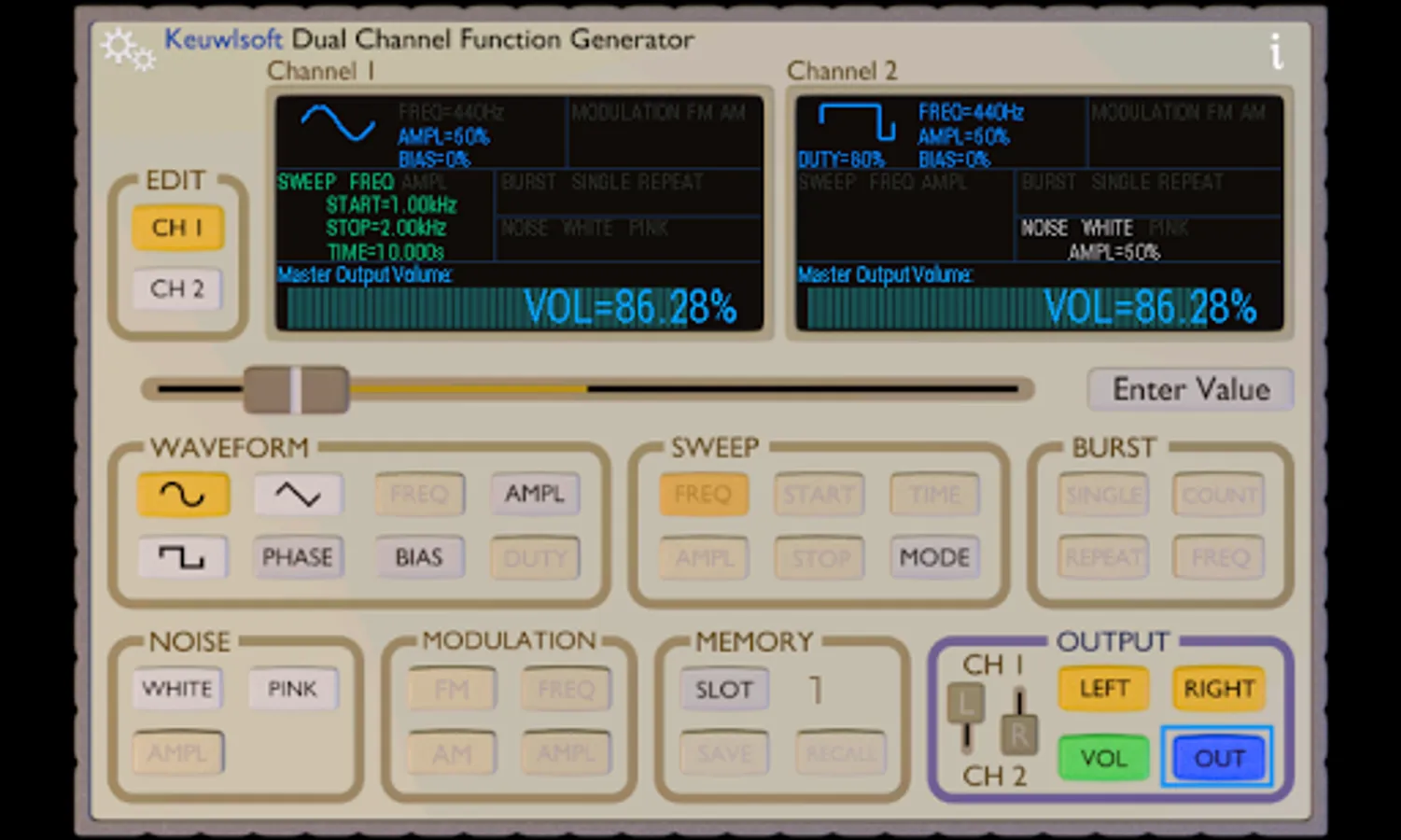 Dual channel function / waveform / signal generator for the speaker / headphone audio output.