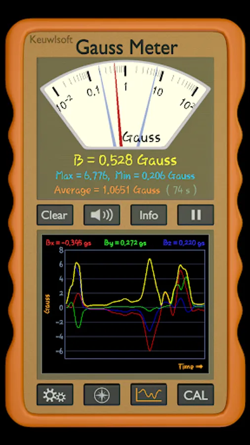 This app uses the magnetic field sensor on your device to measure magnetic flux density (B) in Gauss or Tesla. FOR INDICATION ONLY. Results depend on your device and its hardware. Your device must have a Magnetic Field Sensor for this app to function. Features include:
