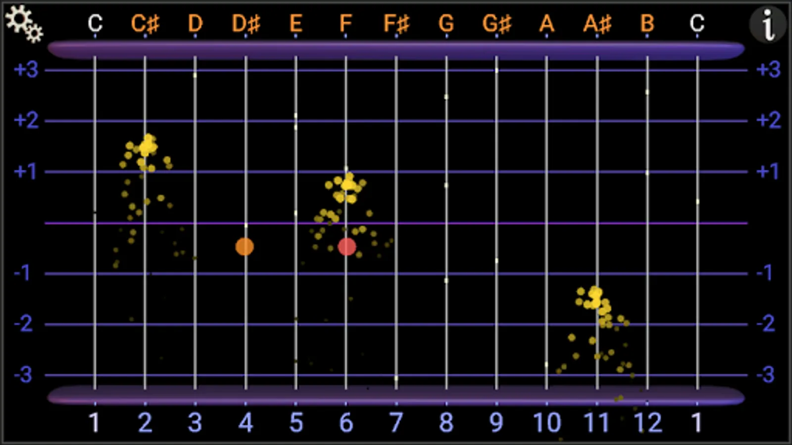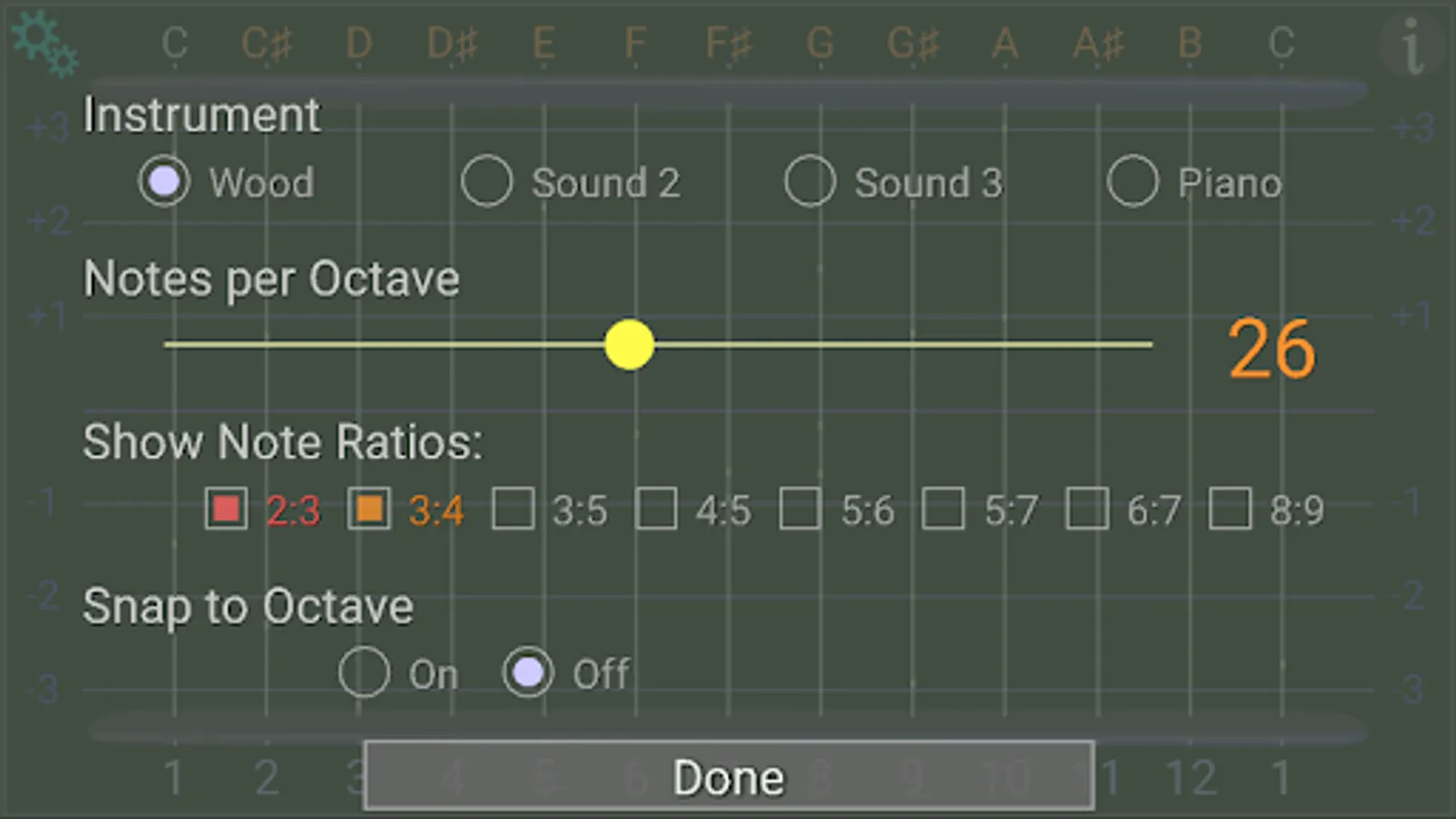 Show note ratio (2:3 perfect fifth, 3:4 perfect fourth etc.) option for easy playing in harmony.
