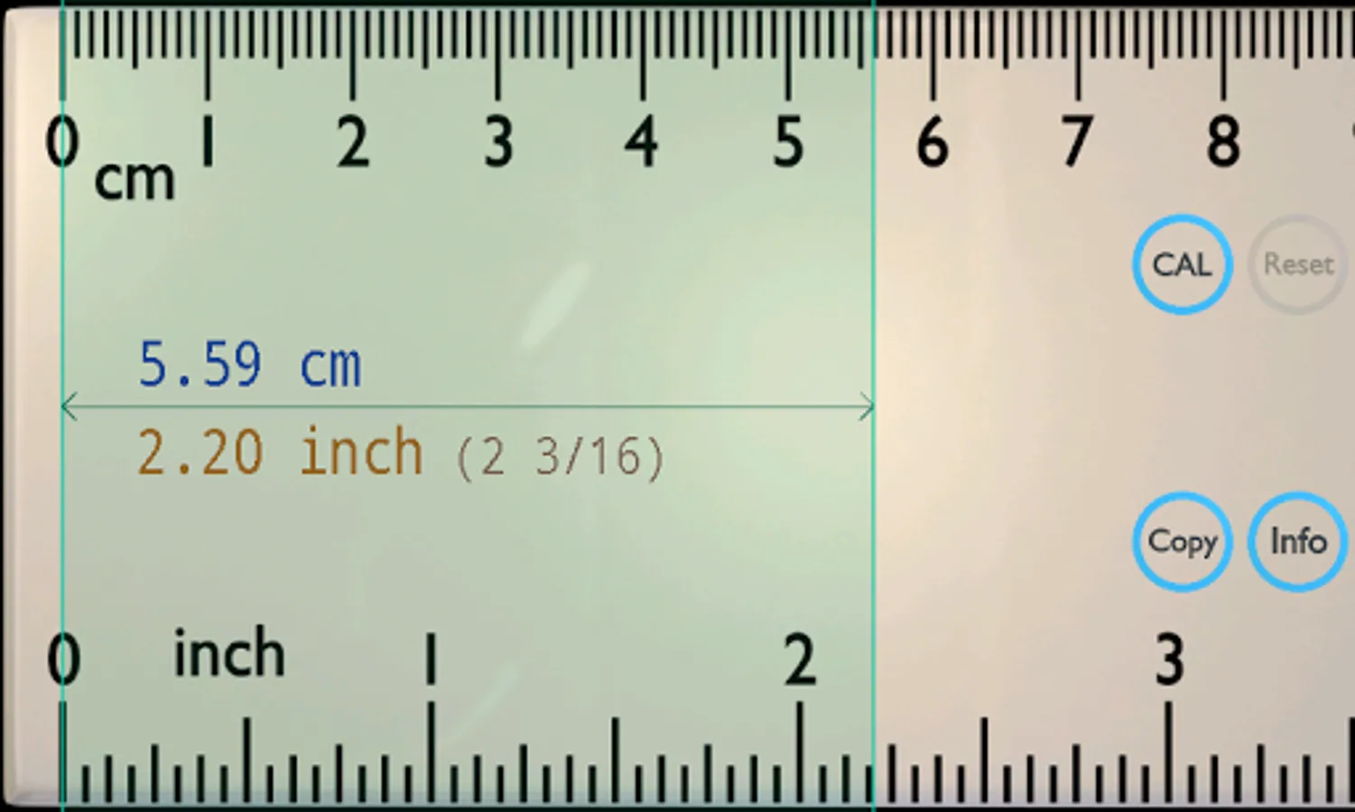 Automatically sizes to most screens. However, check scaling with a normal ruler on first use. If it is not correct, touch CAL and stretch the ruler to the correct size.