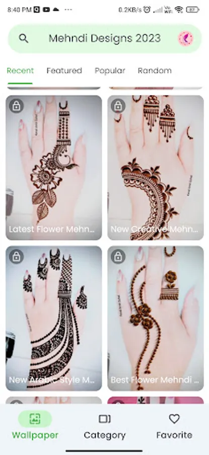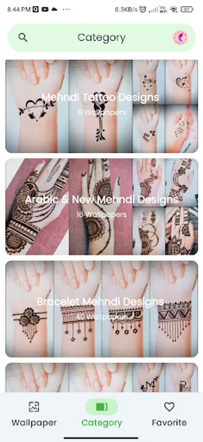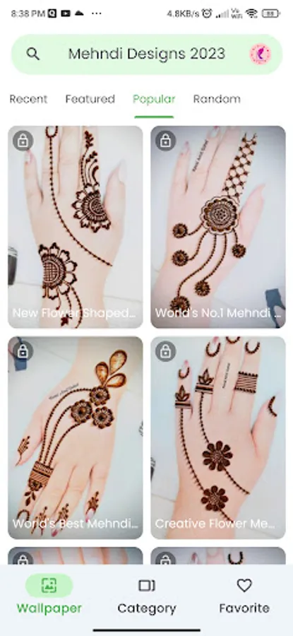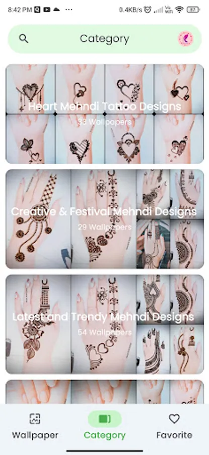 The categories of Mehndi designs made by henna that are included in this applications are: