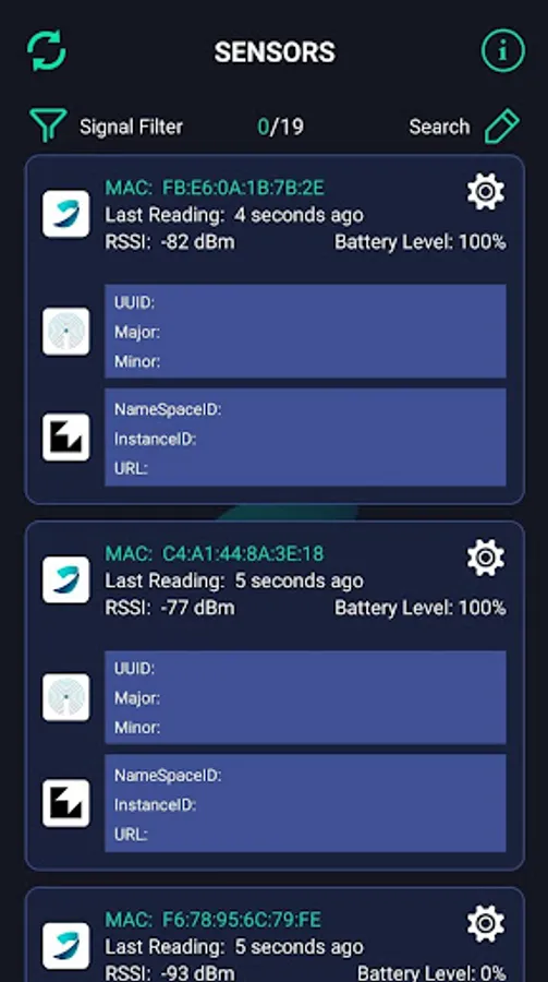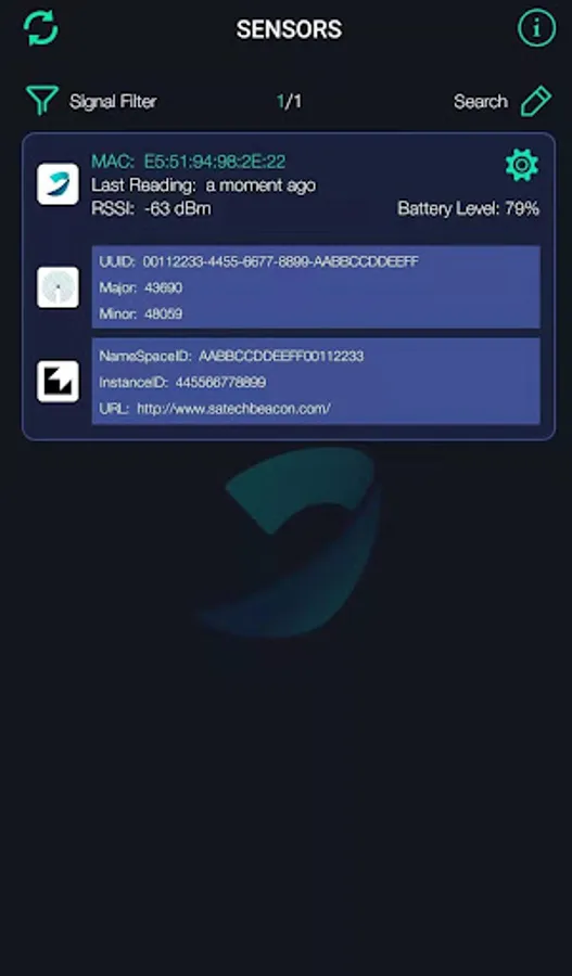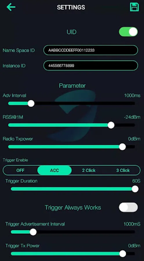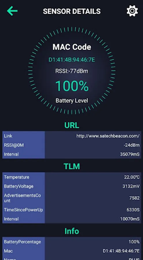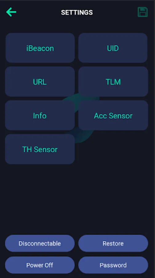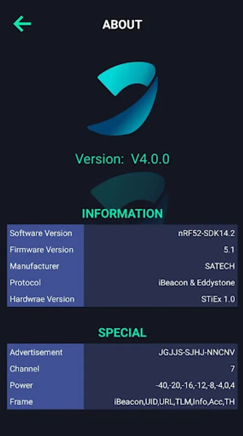 SATECH beacon has 7 broadcast pacekts, the App is used to configure each packet's settings and modify the default parameters including the broadcast interval, Tx power and on-off of each packet.