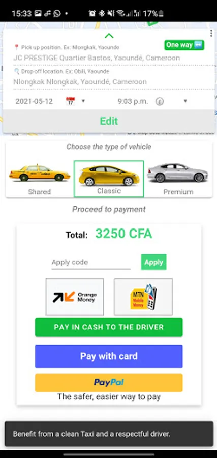 With Driverflow book a taxi to move around the big cities of Cameroon.