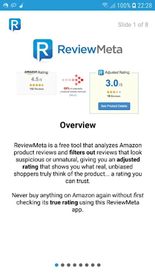 This app is a "must have" for anyone who frequently shops on Amazon. Numerous studies and reports have shown that many of the product reviews on Amazon are fake, biased, incentivized or otherwise unnatural. These reviews skew the product ratings, making it difficult for Amazon shoppers to trust the ratings and reviews.