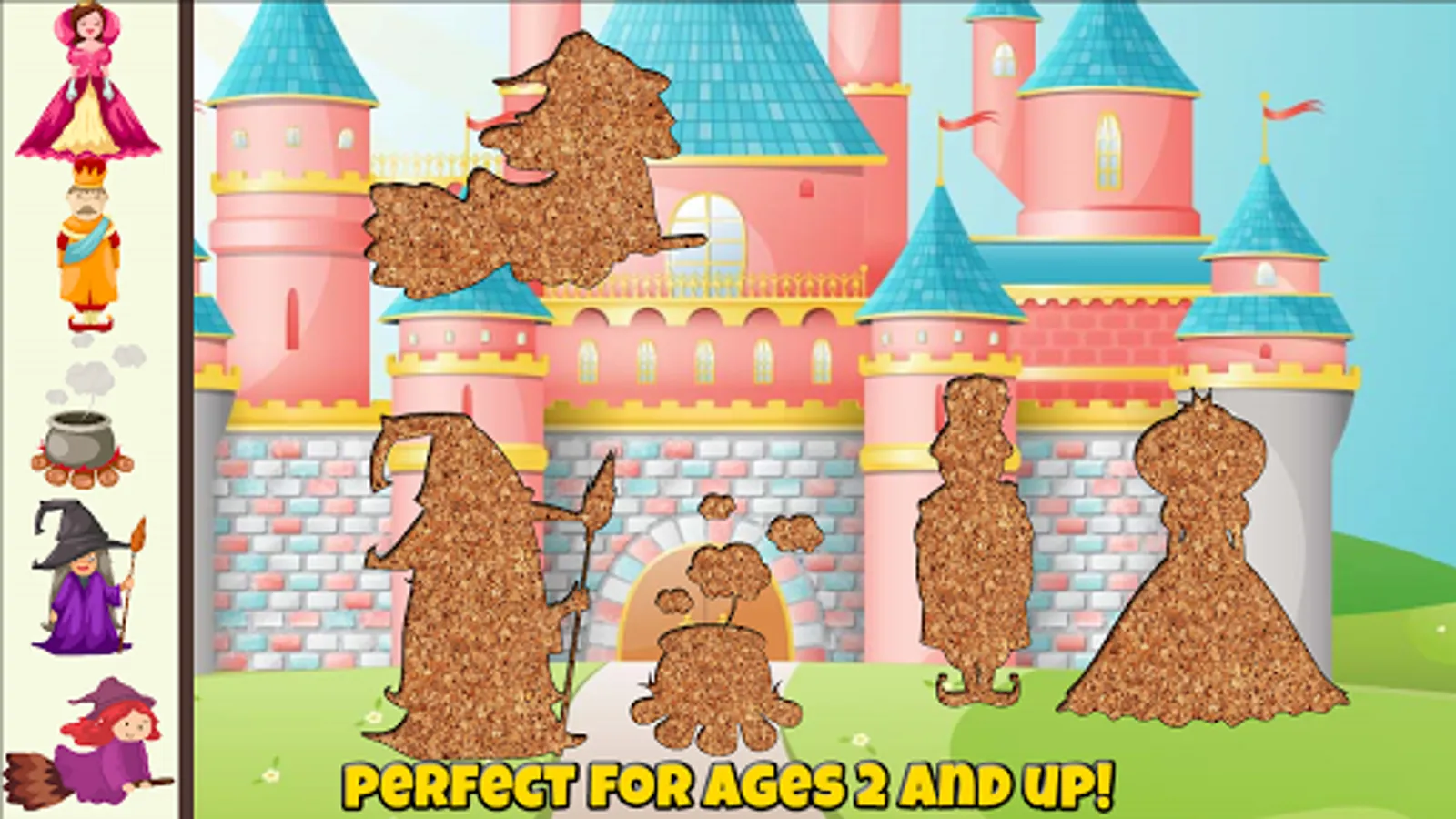 16 beautiful puzzles that feature interactive fairytale characters and creatures! Your little kids and toddlers will love these fully animated fairy-tale jigsaw puzzles that move and make sounds when they are placed. And when the jigsaw puzzle is completed kids can enjoy fun celebrations like fireworks, balloons, bubble popping, and more!