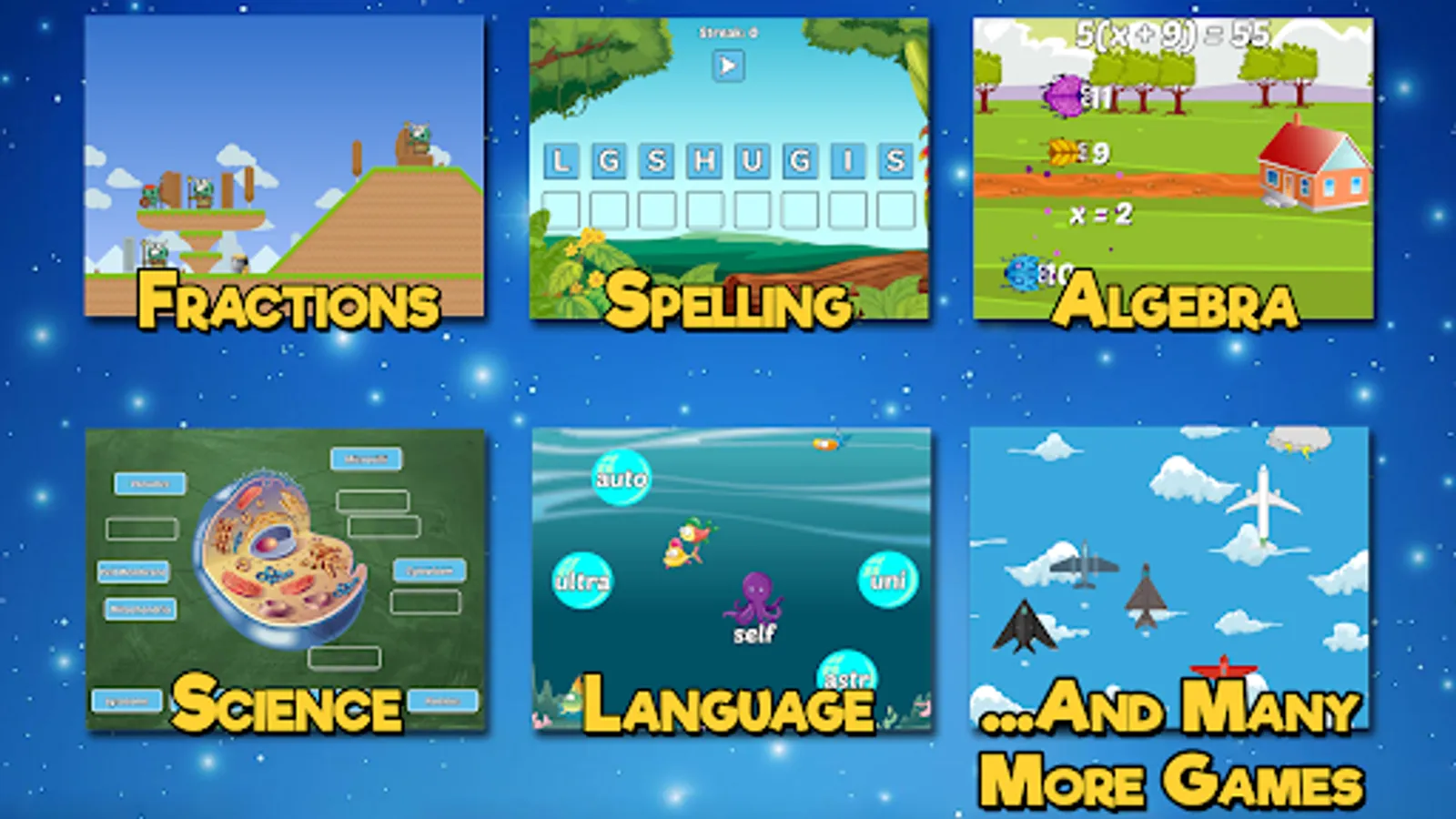 Perfect for 5th grade kids and students who need a fun and entertaining educational game to play. This bundle of games helps your child learn important math, language, algebra, science, and STEM skills used in fifth grade all while having fun! 5th Grade teachers around the world use this app with their students to help reinforce math, language, and science subjects.