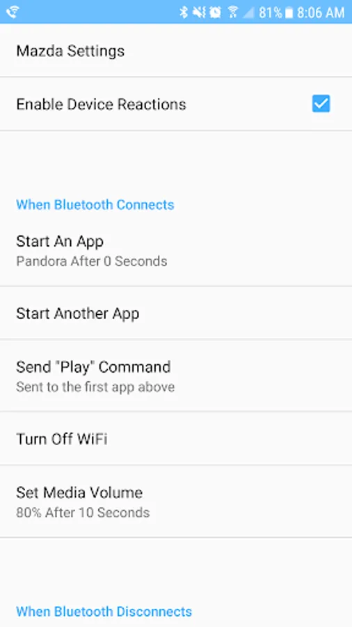 Choose from a variety of reactions when connecting to different Bluetooth devices. Create a different profile for each device. Build your own "If this, then do that" profile.