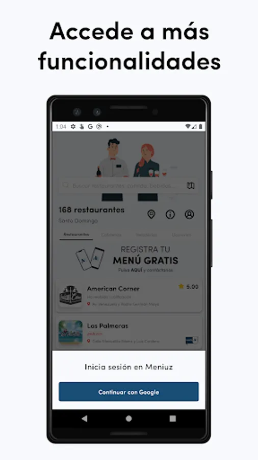 Accede a más funcionalidades cuando inicies sesión para poder agregar tus menús a favoritos y calificar el negocio.