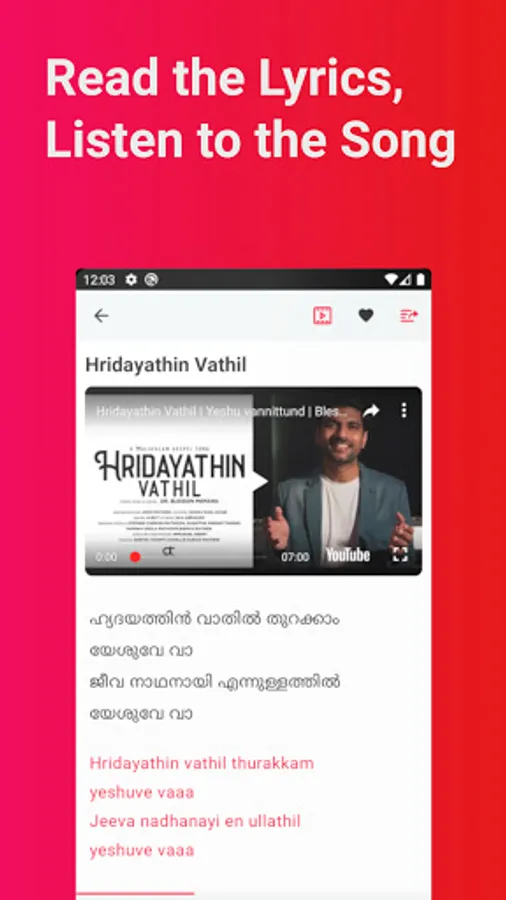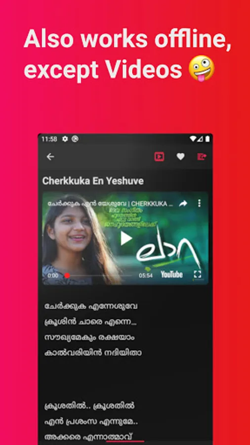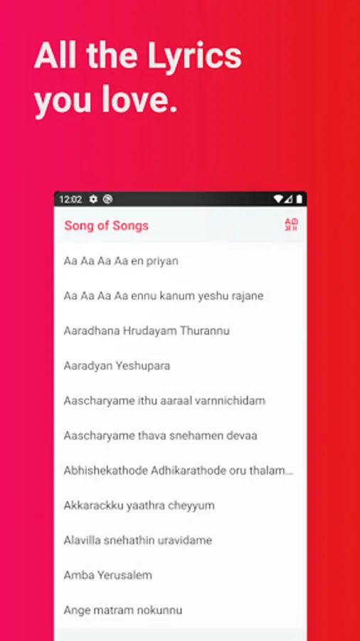 Song of Songs is a simple and easy to use Christian Songbook application containing a collection of Christian song lyrics from various languages. Songs Database are automatically updated with new songs when connected to the Internet. This application works both online and offline(except for the Youtube Videos and Lyrics search).