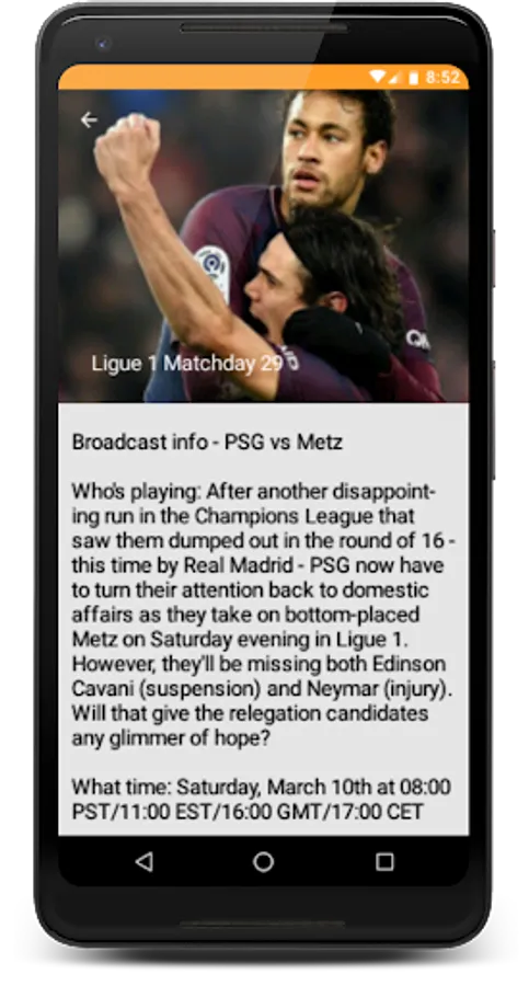 - Detailed match information