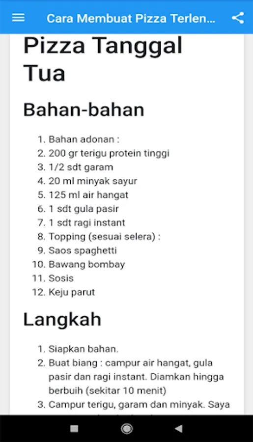 This how to make homemade pizza application contains ingredients and ingredients, steps of making, information about toppings and delicious pizza pictures.