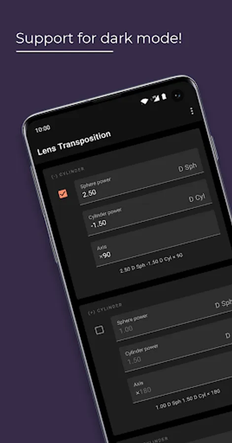 With Lens Transposition, you can transpose one lens formula to the others with ease. Simply select the type of lens formula that you will input, enter the required details and click transpose. The result will be out in no time!