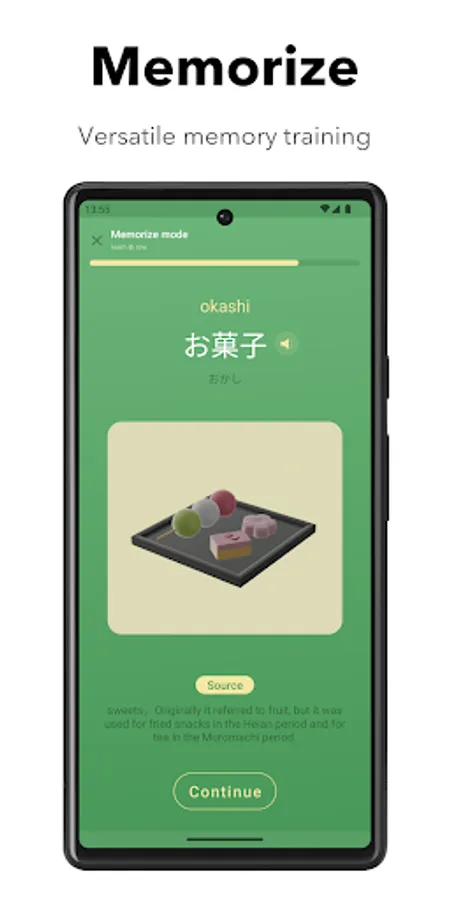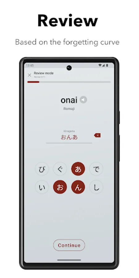 A learning style that incorporates multiple memory modes for intensive review based on the forgetting curve and proficiency level. And you can learn some useful Japanese words in line with your learning progress.