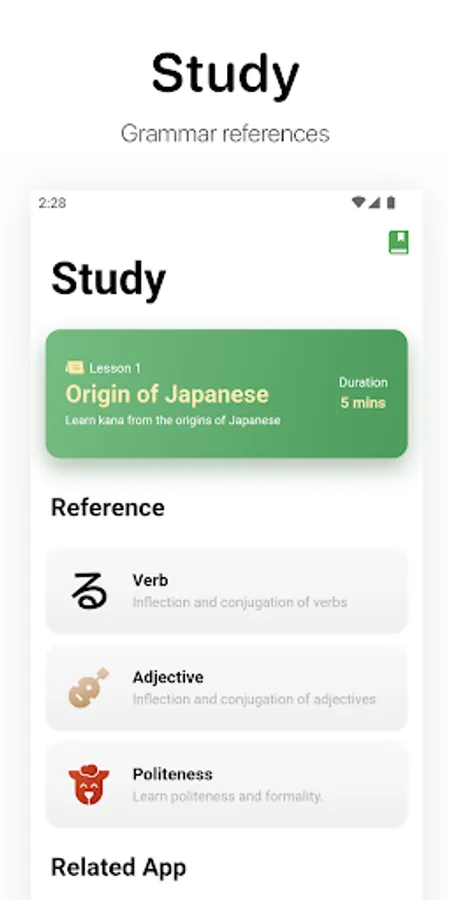 Oyomi is a Japanese "grammar analyzer" and "learning" App.